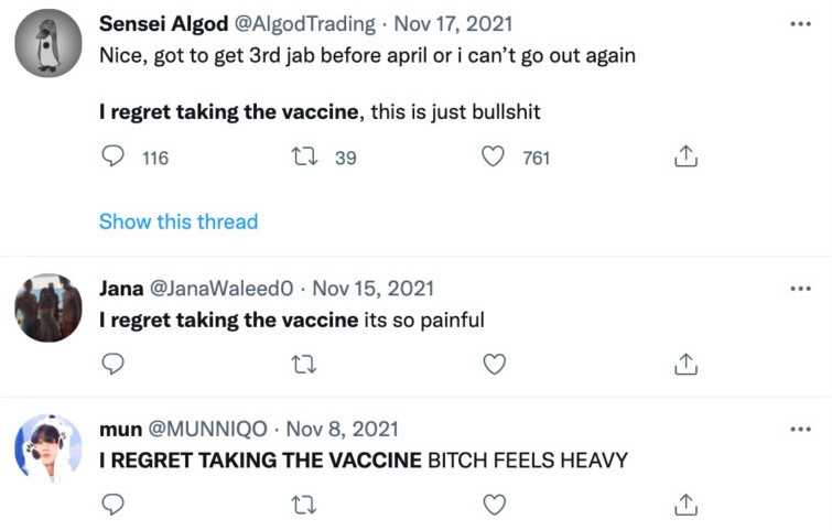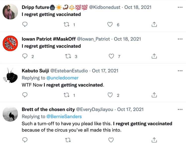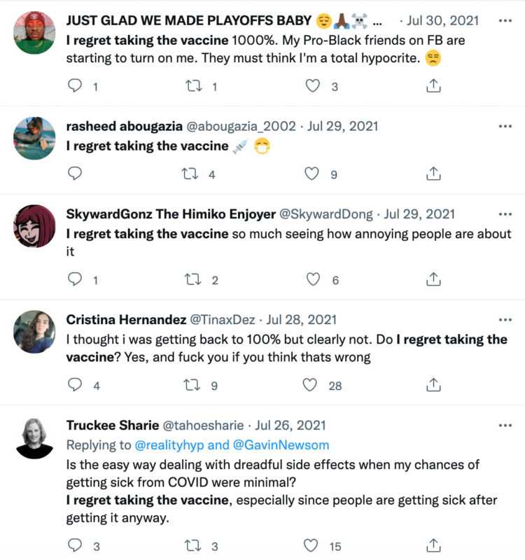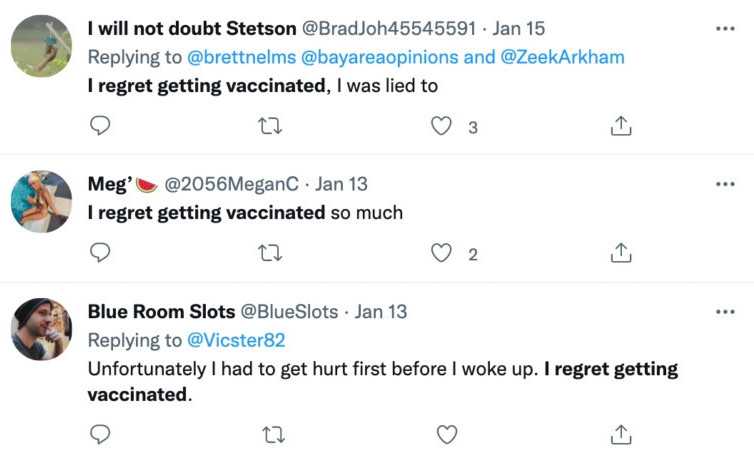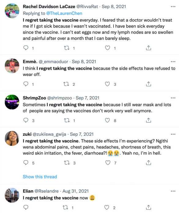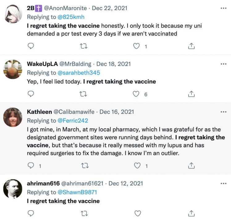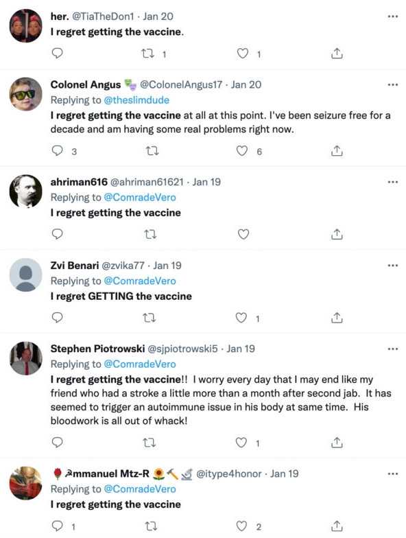 No wonder droves of people have taken to social media to express their regret for ever trusting the government in the first place and getting the jabs.