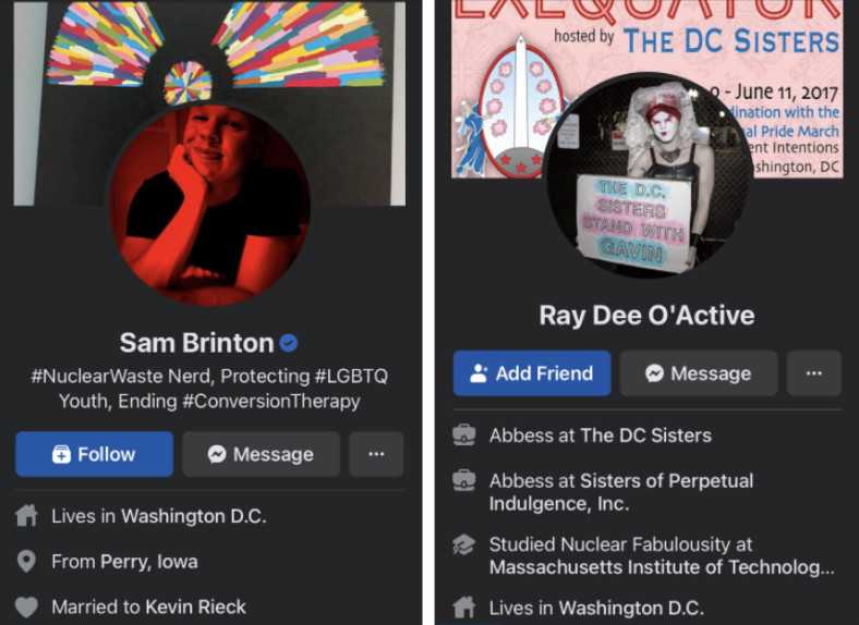 “Brinton – who has written in opposition to ‘gay conversion therapy’ – was recently tapped to serve as the Deputy Assistant Secretary of Spent Fuel and Waste Disposition in the Office of Nuclear Energy for the Department of Energy. He also goes by ‘Sister Ray Dee O’Active’ – his drag queen alter ego,” the Pulse story said.