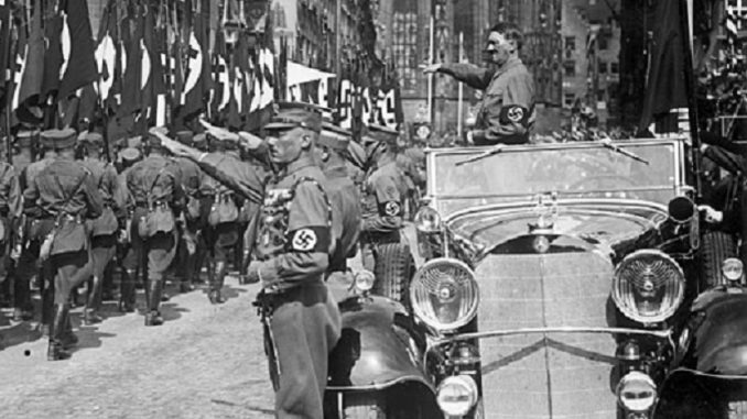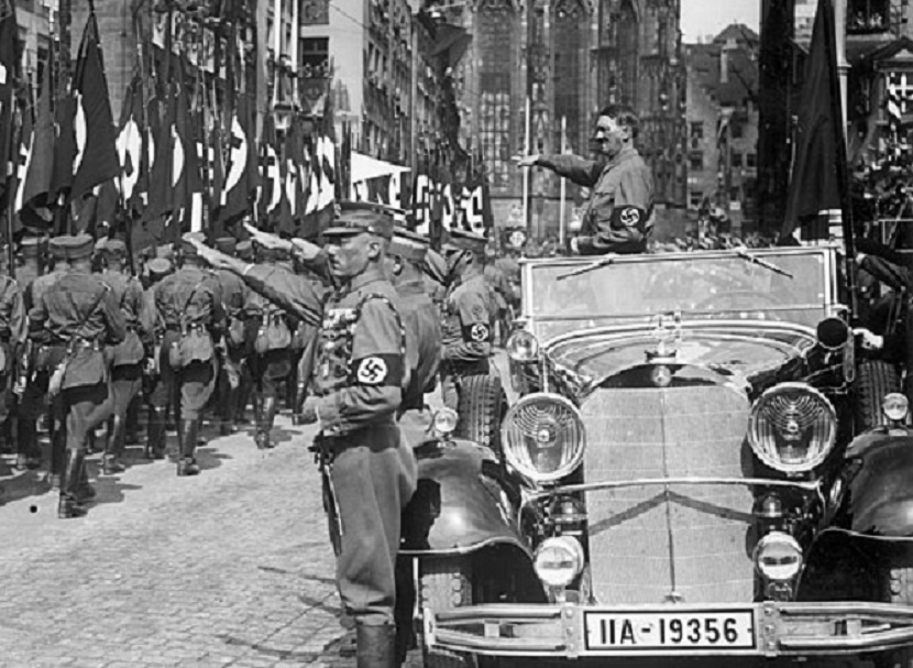 Not only so, but despite Hitler’s paranoia and his legions of bodyguards, he would often stand erect in his car when saluting the crowds. Wouldn’t it be safer to sit down and be less visible?