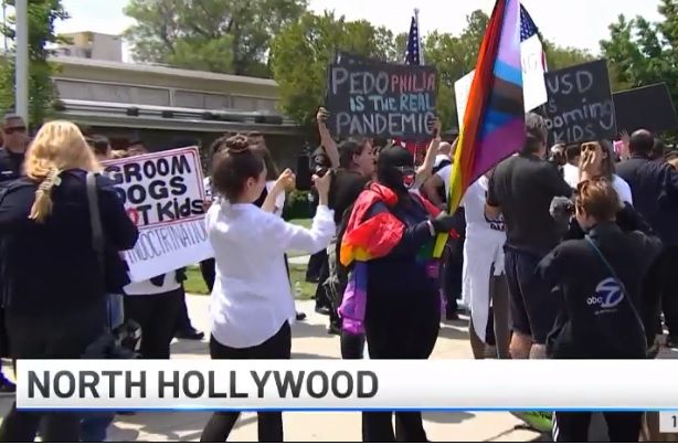 Image: Screen shot; https://www.nbclosangeles.com/news/local/protest-pride-saticoy-elementary-school-north-hollywood/3163790/