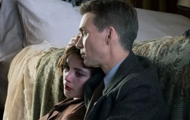 If so — or for whatever motivation — it doesn’t wash with me. The movie is generating swooning notices. The salaciousness is plainly unnecessary. It’s decidedly not okay with at least this potential audience member that he went with it anyway. There is no need for me to ogle Florence Pugh’s (“Jean Tatlock”) exposed breasts, or play spectator to her libidinously mounting Cillian Murphy (“Oppenheimer”).