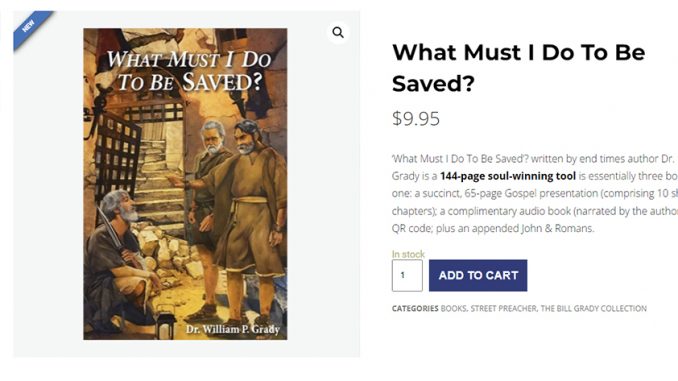 For a limited time, get your FREE COPY of ‘What Must I Do To Be Saved?’ by end times author Dr. Bill Grady with any purchase of $50 or more at the Bookstore!