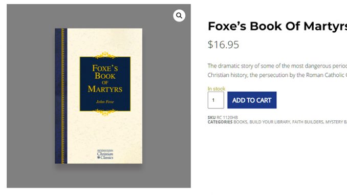 The following quotes and notations are taken from Foxe’s Book of Martyrs: