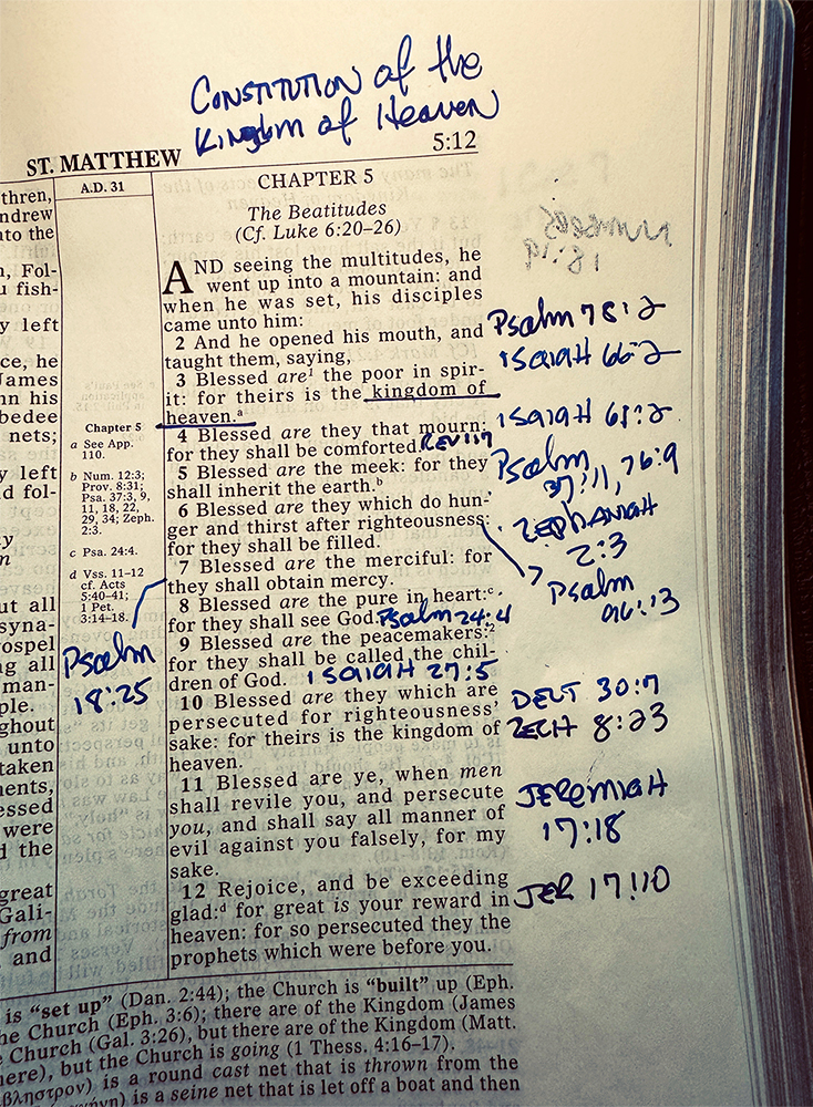 The 9 beatitudes from the Sermon on the Mount shows us what the constitution of the Millennial Kingdom under King Jesus will look like