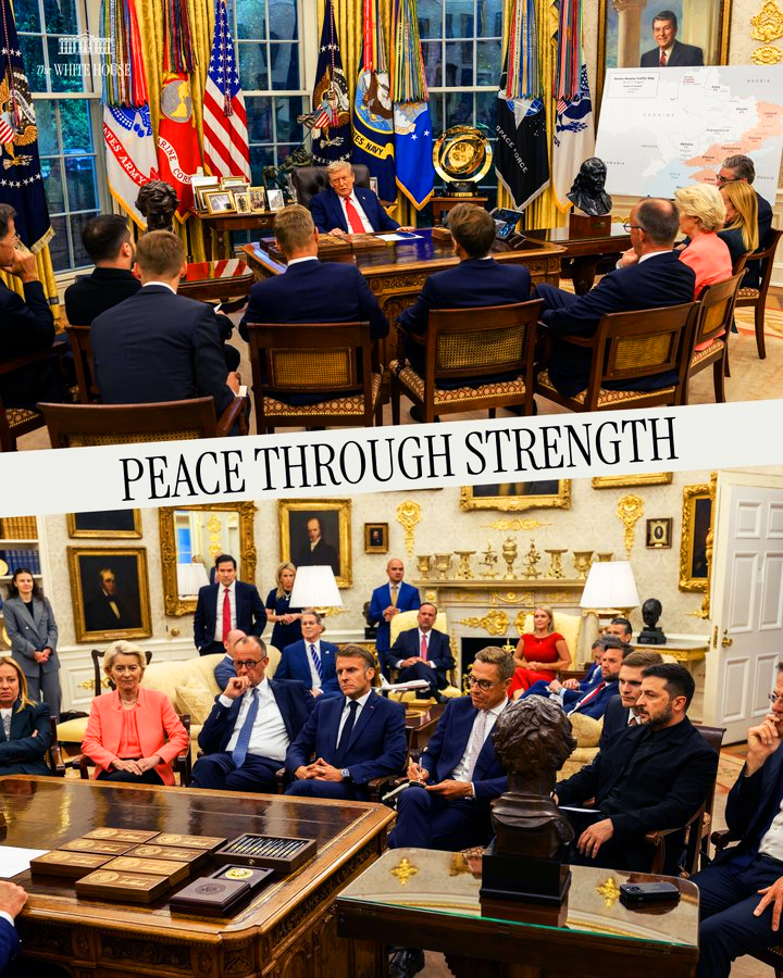 It was a wild scene in the Oval Office yesterday as the leaders of Italy, Germany, France, Finland, the president of the EU Commission, and the NATO secretary general were all put in chairs around the Resolute Desk while President Trump pontificated on how to proceed with ending the war between Russia and Ukraine. It was crazy, just look at the disdain on all their faces, like something out of an end times movie. That’s because we are living in an end times movie, and that’s the memo.